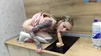 In this erotic tale of Tattooed and Braless Riding Dildos on the Kitchen Counter, we have a stunning woman with long braids adorning her face who is prominently featured as she displays an array of tattoos, some large, some small, all inked over her body signifying her rebellious nature and wild spirit.She is not one to hold back when it comes to pleasure and desires intense experiences to satiate her craving for a good time.She finds herself in a welllit kitchen, the perfect place where naughty encounters have happened before the counter serves as an essential platform for her sexual exploits, supporting her every move as she enjoys this forbidden fruit of lust.Her tattoos stretch across her body some reading like confessions on her flesh a tribute to her boldness and her unapologetic need to explore all facets of her desires.As her hands reach for her socks, pulling them down her legs in haste, she is revealed in all her braless glory, her large, firm breasts swaying lightly with her movements.In her right hand, she holds a dildo not a substitute, but a tool of exploration and selfdiscovery, as well as an accessory to fulfilling her fantasies in the privacy of her own home.The woman starts riding the dildo on the kitchen counter, moving it with enthusiasm, her breath quickening, the slap of her pussy lips against the fake penis echoing in the quiet room.She closes her eyes, imagining that a mans hands are grasping her hips, his lips exploring her neck while he slides inside her from behind.Her fingers dance across her clit, mimicking his touch, and as she rides harder on the dildo, the image of a mans lips spreading her cunt becomes more vivid in her mind, her body responding to her fantasies.As she brings herself closer to climax, her nails dig into the countertop while her back arches, her tattooed skin glistening under the light.She moans in pleasure as she imagines him fucking her from behind, his cock hitting the right spots that drive her wild.Her lips spread wide with her oral fixation, her tongue darting in and out of her mouth, mirroring the dildo that fills her vagina, bringing her closer to the edge of blissful release.She imagines this man spreading her cunt with his fingers while his lips suck on her clit, their tongues licking away the salty juices of her orgasmic delight.Her climax overtakes her body as her back arches and she shudders in pleasure, the fun of her orgasm making her grip on the dildo even tighter while her cunt squeezes down hard on it, the sounds of her gasping breaths and moans filling up the room.The kitchen counter bears witness to the womans unyielding passion for her own pleasure as she explores new heights of satisfaction through her intimate encounters with herself, leaving no trace of her wild imagination but a memory imprinted in her soul that of a tattooed and braless adventure on the kitchen counter.